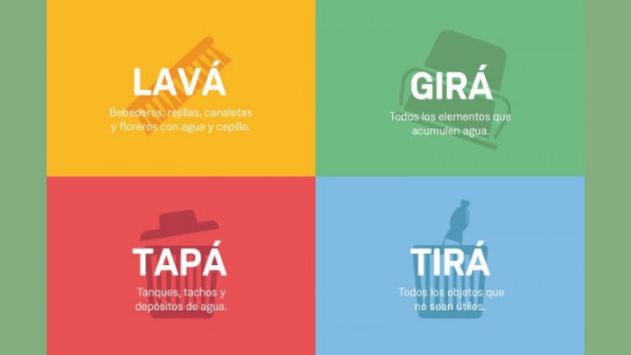 Una de las medidas más importantes para evitar la propagación del mosquito, es eliminar todos los objetos que pueden acumular agua, como por ejemplo latas, botellas, neumáticos, bidones de plástico cortados, entre otros. Sin embargo, hay recipientes que no podemos tirar, por lo que se recomienda girar los baldes, limpiar, cepillar y cambiar todos los días el drenaje del aire acondicionado, los floreros y los bebederos de animales. También resulta efectivo tapar los recipientes que son utilizados para la recolección de agua, como tanques, barriles o toneles, tapar la pileta con una lona y pasar las plantas que están en agua a una maceta con tierra.