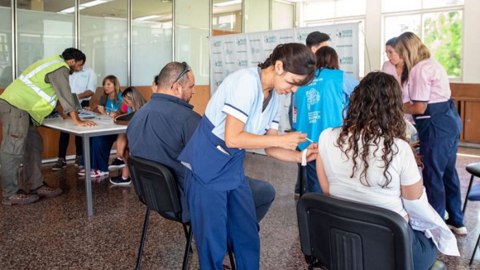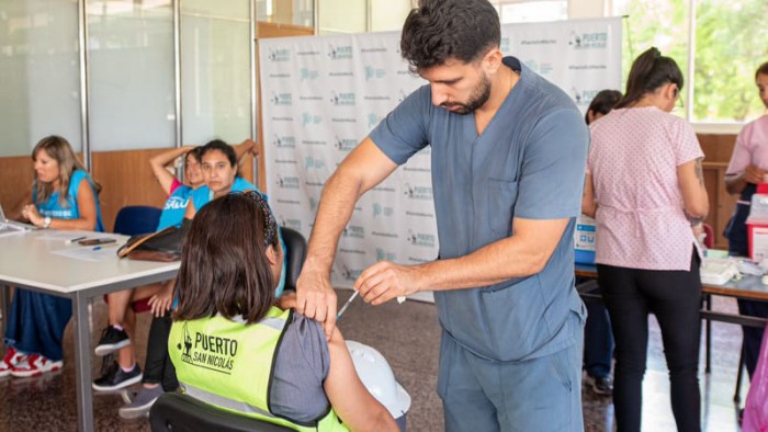 Tras conocerse varios casos de infección en la zona, por decisión de la Presidenta del Consorcio de Gestión del Puerto de San Nicolás, Cecilia Comerio, para cuidar la salud de todos los que realizan tareas en el muelle de cargas generales y en la administración portuaria, en la mañana de este jueves se realizó una jornada de vacunación en conjunto con el Hospital San Felipe y la Dirección Provincial de Salud Comunitaria.