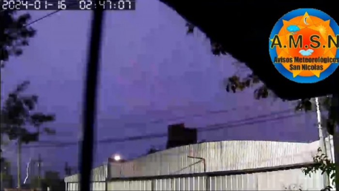 En el video se puede observar un rayo a tierra, a la izquierda, captado por la cámara de monitoreo meteorológico colocada en la zona oeste de San Nicolás.