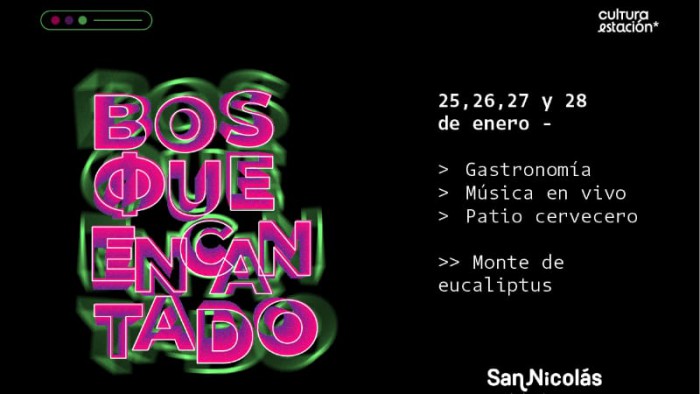 Cultura de Estación inicia con Bosque Encantado en el Monte de Eucaliptus. Desde el jueves y hasta el domingo a partir de las 20:00 habrá foodtrucks, espectáculos en vivo, patio cervecero y una decoración que resalta la belleza del lugar.