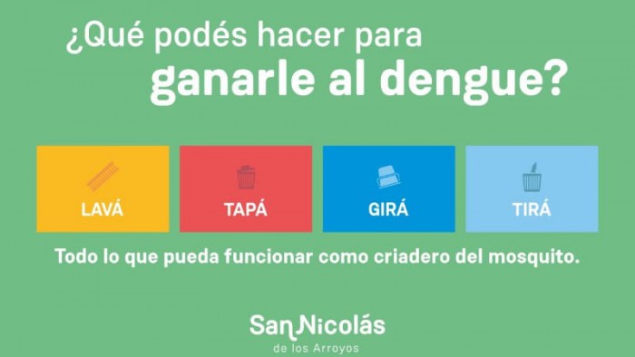 Debido a las lluvias de los últimos días en la ciudad, la Municipalidad de San Nicolás recuerda las medidas de prevención para evitar la propagación del mosquito transmisor de Dengue, que suele criarse en nuestros hogares. Allí, la hembra coloca sus huevos en los bordes de los recipientes donde haya agua acumulada y muchas veces son imperceptibles a la vista. Por eso, es importante que todos los vecinos participemos activamente controlando los posibles criaderos.