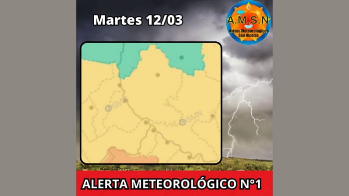 El Servicio Meteorológico Nacional emitió una alerta amarilla para el martes 12 de marzo.