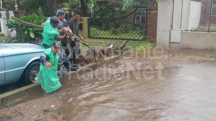 Los integrantes de la Cooperativa Gabriel Vera tienen a cargo el mantenimiento de los zanjones de San Nicolás y se encuentran limpiando y quitando los elementos que vecinos han arrojado para que no se obstruya la circulación del agua.