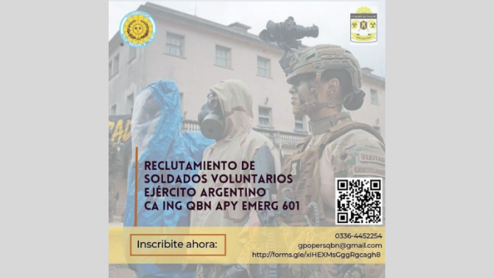 La Compañía de Ingenieros QBN y Apoyo a la Emergencia 601 invita a inscribirse como postulante a ingresar como soldado voluntario a los ciudadanos nicoleños y de alrededores que deseen servir a la Patria.