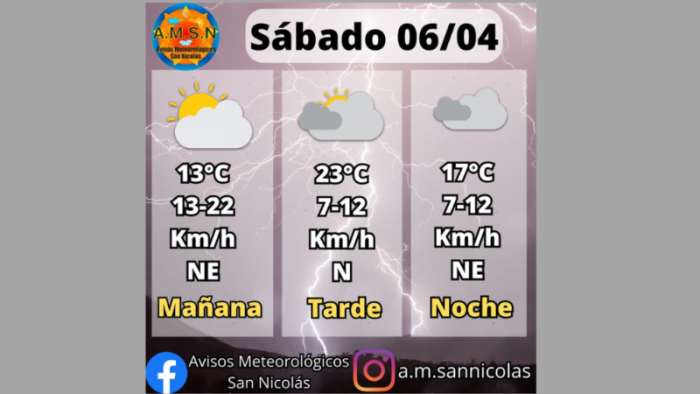 Información suministrada por Avisos Meteorológicos San Nicolás