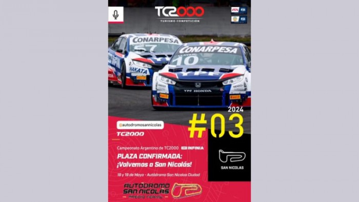 Finalmente se confirmó que el próximo 18 y 19 de mayo, el campeonato argentino de TC2000 volverá al Autódromo de San Nicolás. Acompañarán el Superbike Argentino y la Fiat Competizione, disputando su segunda y tercera fecha.