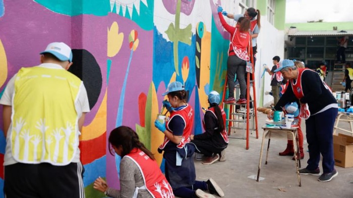 270 personas participaron este sábado del primer día del programa Voluntarios en Acción en la Escuela Primaria 4, a la que asisten 530 alumnos.