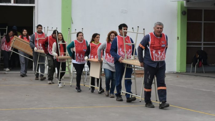 También colaboraron ubicando el nuevo mobiliario en las aulas renovadas de la institución.