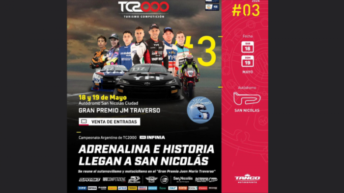 El próximo fin de semana, el Autódromo San Nicolás recibirá una vez más a la categoría más tecnológica de Latinoamérica. Los días 17, 18 y 19 de mayo, el TC2000 disputará la 3° fecha “Gran Premio Juan María Traverso” del 45° Campeonato Argentino de TC2000.
