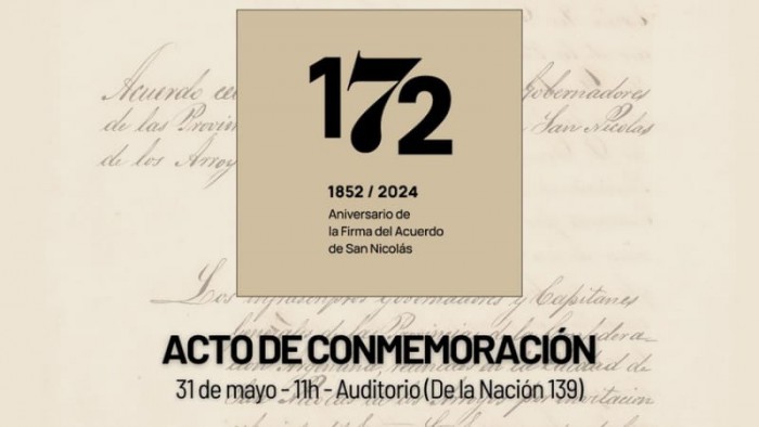Este viernes 31 de mayo a las 11h se realizará un acto de conmemoración de la firma del Acuerdo de San Nicolás que comenzará en el Auditorio del Edificio Anexo (De la Nación 139).
