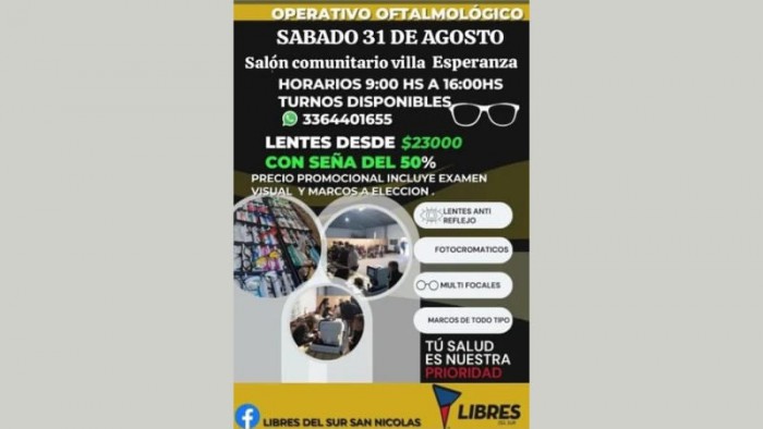 Libres del Sur organiza nuevamente el servicio de venta de anteojos a precios accesibles y la entrega de los tramitados en el operativo anterior.