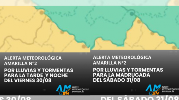 El Servicio Meteorológico Nacional (SMN) emitió un alerta meteorológico por lluvias y tormentas para la tarde-noche del viernes 30 y madrugada del sábado 31.