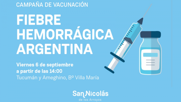 Este viernes 6 de septiembre, personal de la Municipalidad de San Nicolás estará realizando la vacunación contra la Fiebre Hemorrágica Argentina en barrio Villa María.