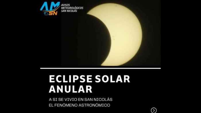 En San Nicolás, la parcialidad se dio a las 17:38 con un porcentaje del 48%. La temperatura bajó a 19.7°C, mientras que antes del eclipse marcaba 21.9°C en la ciudad.