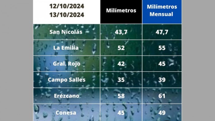 Avisos Meteorológicos San Nicolás informa que el agua caída durante el fin de semana largo en San Nicolás fue de 43,7mm. Durante el mes de octubre el registro de lluvia para nuestra ciudad es de 47,7mm.
