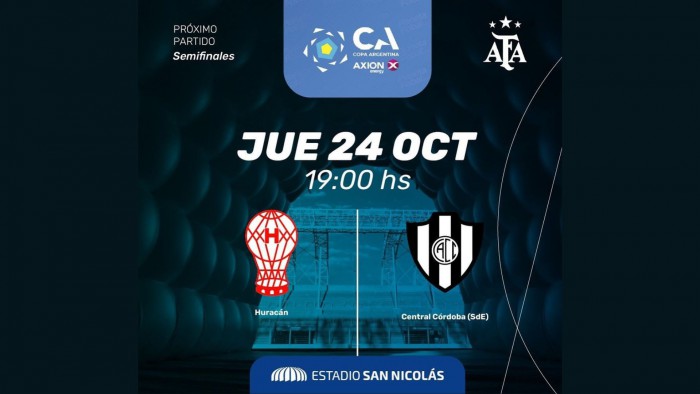 Este jueves 24 de octubre a las 19:00, el Estadio San Nicolás recibirá a Huracán y Central Córdoba de Santiago del Estero quienes disputarán la primera semifinal de la Copa Argentina.