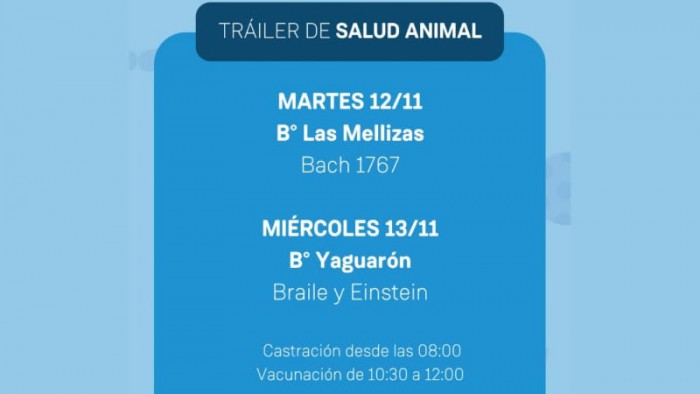 En el caso de la vacunación, se realizará de 10:30 a 12:00 a caninos y felinos a partir de los 3 meses de edad.