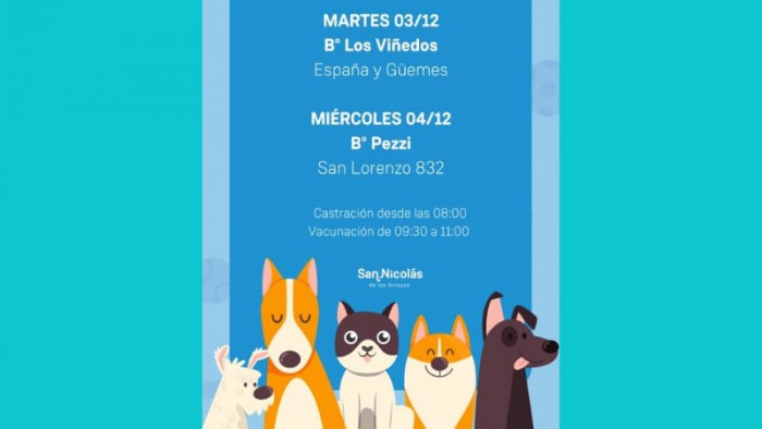 En el caso de la vacunación, se realizará de 9:30 a 11:00 a caninos y felinos a partir de los 3 meses de edad.