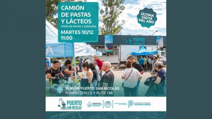 Este martes 10 de diciembre a partir de las 11hs. el Camión de Pastas y Lácteos ofrecerá sus productos en el playón del Puerto de San Nicolás.