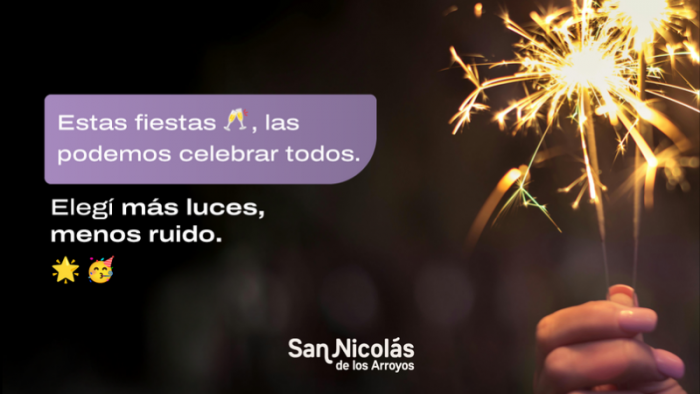 La Ordenanza 9836/2019 que fue aprobada por el Concejo Deliberante en el año 2018 prohíbe la utilización de elementos pirotécnicos de alto impacto sonoro y es por eso que la Municipalidad de San Nicolás impulsa una vez más la campaña “Más luces, menos ruido” para aumentar la conciencia social y disminuir la fabricación, comercialización y uso de pirotecnia en la ciudad.