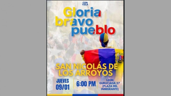 Este jueves 9 de enero, de 18:00 a 20:00, se llevará a cabo en San Nicolás una concentración de venezolanos en respuesta a la convocatoria realizada a nivel mundial de Maria Corina Machado, líder de la oposición al gobierno de Nicolás Maduro, reclamando libertad.