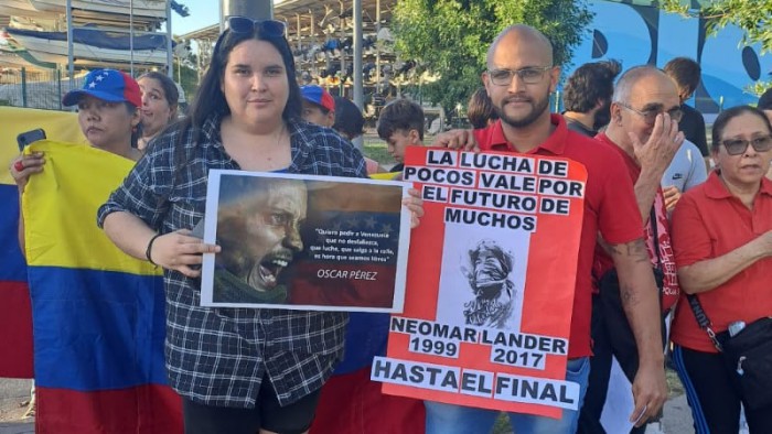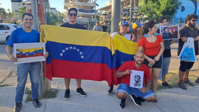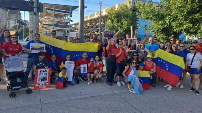 Argentinos y Venezolanos se congregaron en la plaza de los Inmigrantes manifestándose con cánticos y carteles.
