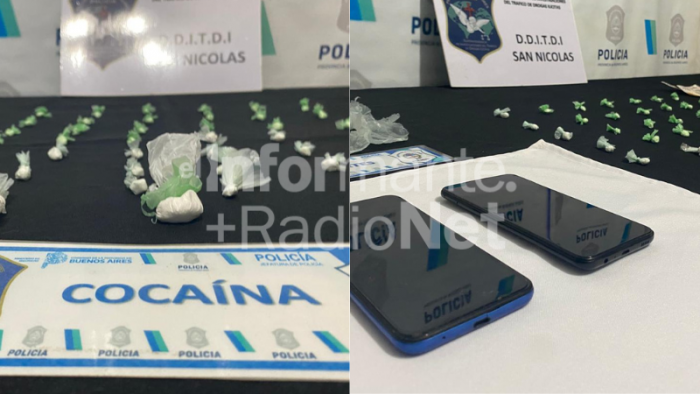 En el lugar secuestraron 50 dosis de cocaína, balanza de precisión, anotaciones, teléfonos celulares, recortes de nylon y dinero.