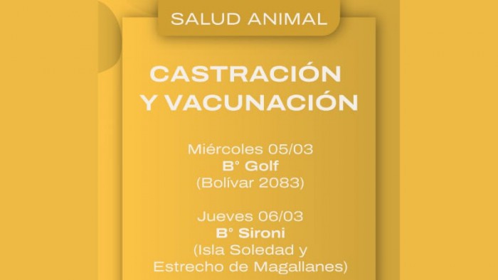 Este miércoles 5 de marzo estará ubicado en barrio Golf, en Bolívar 2083, y el jueves 6 en barrio Sironi, en Isla Soledad y Estrecho de Magallanes.