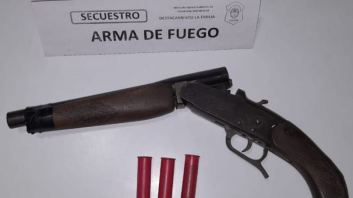 Personal del Destacamento La Emilia aprehendió en calle L. Córdoba y San Lorenzo a un sujeto de 19 años que tenía escondida entre su ropa, una escopeta recortada calibre 16.