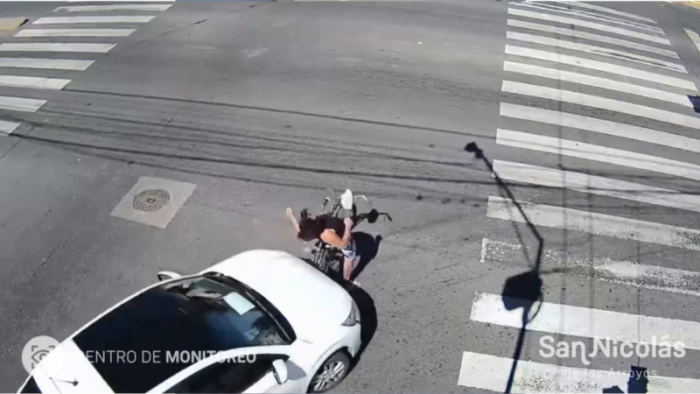 Se puede observar a través de las Cámaras de Monitoreo Municipal el momento en que el auto, conducido por un hombre de 35 años, intenta girar a la derecha y termina colisionando contra la bicicleta, guiada por una mujer de 60 años que se encontraba esperando el cambio del semáforo.