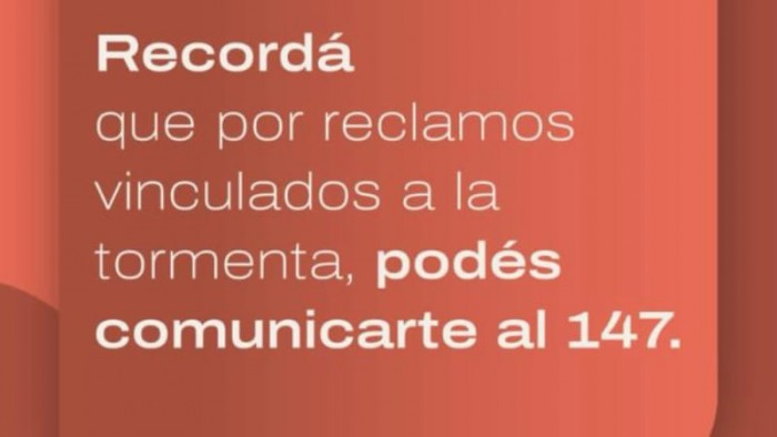 Por reclamos vinculados a la tormenta, los vecinos pueden comunicarse al 147.