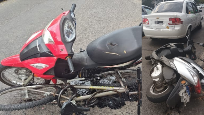 Por un lado, en Alberdi y Moreno, colisionaron una motocicleta Mondial, guiada por una mujer de 35 años y un automóvil Chevrolet Clásico, conducido por un hombre de 53 años.