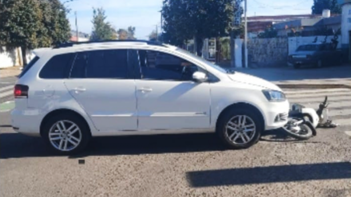 En Av. Viale y Chacabuco colisionaron un automóvil Volkswagen Suran, conducido por una mujer de 76 años, y una motocicleta Zanella 110cc, tripulada por una joven de 26 años y su hija de 5.