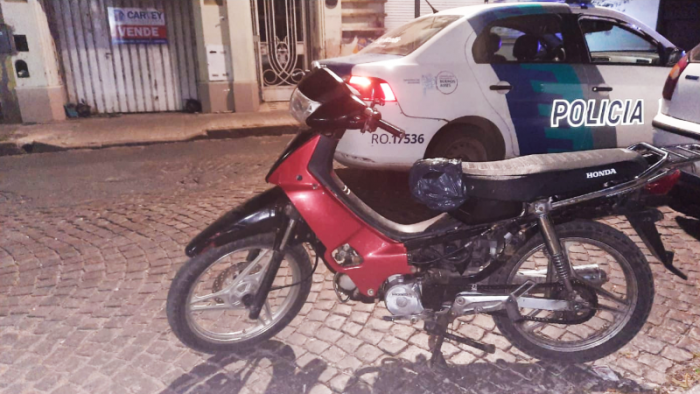 Personal de Policía Local detuvo en Balcarce y Pellegrini a dos sujetos de 23 y 24 años que se movilizaban en una motocicleta Honda Wave modelo NF 100, roja y negra, que tenía pedido de secuestro por “hurto” a solicitud de la UFI N°6.