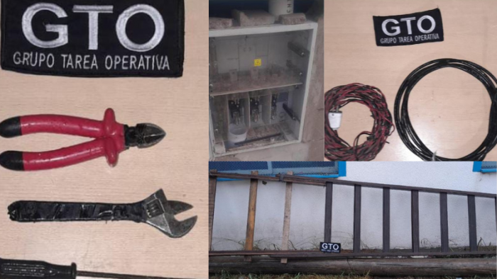 Allí secuestraron un cable de bajada de pilar de luz, un morceto para cable concentrico, un rollo de cable de 15 metros, un disyuntor, una térmica, una escalera de madera de 6 metros y herramientas utilizadas para cometer el hecho como una llave francesa, un alicate y un destornillador.