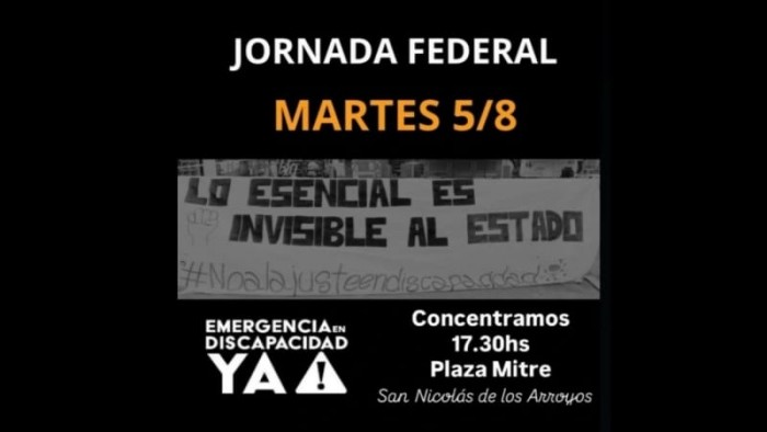 Se llevará a cabo a partir de las 17:30 hs este 5 de agosto. “La discapacidad no espera. Los derechos no se vetan. Por eso nos organizamos y salimos a reclamar”, expresaron.
