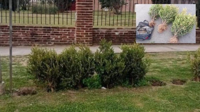 La policía aprehendió a dos sujetos de 38 y 41 años en Av. Pte. Perón y P. Mendoza, mientras se encontraban hurtando tres plantas Boxus de la Municipalidad.
