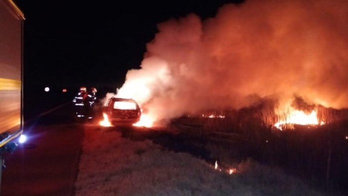 El conductor del vehículo tuvo que detenerse en la banquina de la ruta al ver humo y fuego en la parte delantera del motor. Las llamas no tardaron en expandirse al habitáculo y a la carrocería.