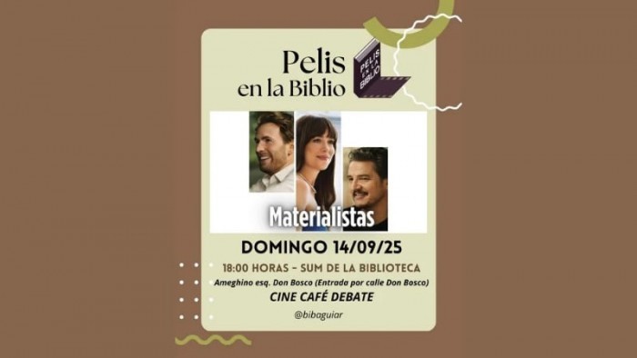 La Biblioteca Popular “Rafael de Aguiar” continúa con su ciclo de cine debate para el año 2025 con la película “Materialistas” (2025) de la directora Celine Song. Con Dakota Johnson, Chris Evans y Pedro Pascal en los roles principales.
