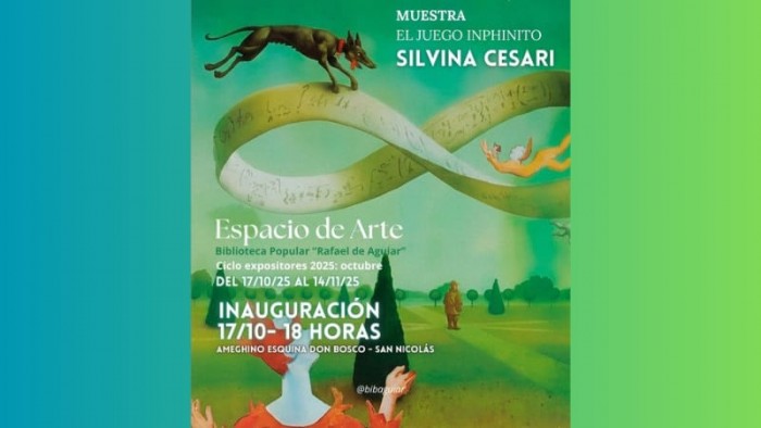Continuando con su ciclo 2025 de expositores en su Espacio de Arte, la Biblioteca Popular “Rafael de Aguiar” invita a la comunidad a la inauguración de la próxima muestra a montarse durante el mes de octubre: “El juego inPhinito” de Silvina Cesari. La cita será el día viernes 17 de octubre a las 18 horas en la sede central de la Biblioteca (Ameghino esquina Don Bosco).