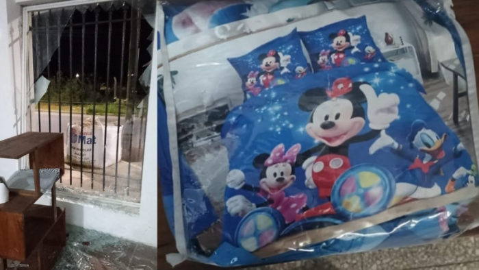 La propietaria se comunicó con la redacción de diario EL INFORMANTE y explicó que eran dos delincuentes. Ambos rompieron la vidriera del local y sustrajeron un juego de sábanas con dibujos infantiles.