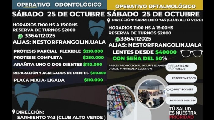 Libres del Sur organiza nuevamente el servicio de venta de anteojos a precios accesibles y el operativo odontológico, que se realizarán juntos el próximo sábado 25 de octubre.