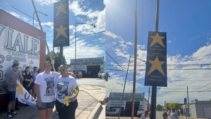 A las 16:00 la Asociación Civil Estrellas Amarillas llevó a cabo la colocación de dos estrellas en memoria de Brisa Romero y Rodrigo Rial, la pareja que falleció en un accidente de tránsito en septiembre del año 2024, en la intersección de Viale y Chacabuco.