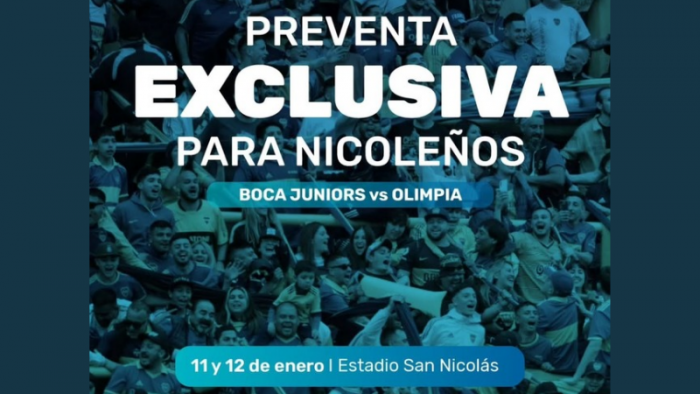 Este domingo 11 y lunes 12 de enero se realizará la venta presencial exclusiva de entradas para San Nicolás.