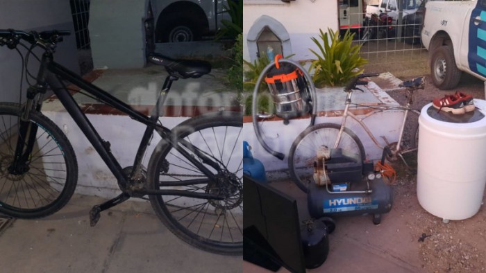 Llevaba en su poder electrodomésticos robados, mientras que en el techo de un vecino había escondido un TV, una aspiradora, un lavarropas y dos bicicletas. En el rastrillaje realizado observaron que otros elementos los fue dejando en la vía pública. Lo sustraído a la víctima fue recuperado.