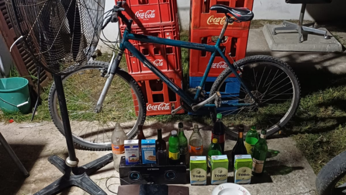 Los elementos secuestrados en el lugar fueron: ventilador industrial, cinco esqueletos de Coca Cola, esqueleto de cerveza, tres cajas de vino Toro por un litro, dos cajas de sal Dos Anclas, botella de Minerva, dos envases de Fernet, envases descartables por dos litros, dos envases de vidrio por un litro, botella de sidra 1888, envase de cerveza, botella de miel por un litro y dos envases descartables Fernando.