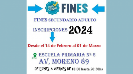 Desde la Coordinador Distrital del Plan Fines informaron sobre la apertura de las inscripciones para continuar/finalizar su trayectoria educativa en el nivel secundario.
