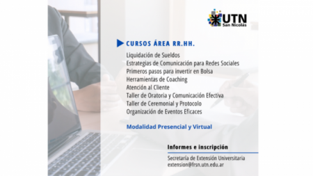 La Facultad Regional San Nicolás continúa ofreciendo capacitaciones durante todo el año. Se encuentra abierta la inscripción para los cursos del área Recursos Humanos, con modalidades presenciales y virtuales.