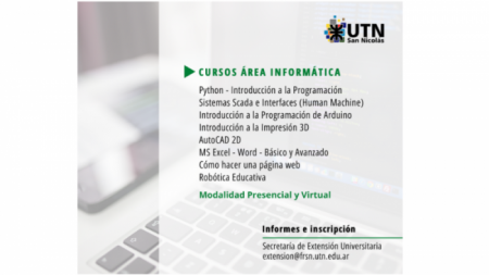 Se encuentra abierta la inscripción para los cursos del área Informática dictados en la UTN San Nicolás, con modalidades presenciales y virtuales.
