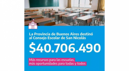 La Provincia comenzó el envío de fondos a los Consejos Escolares bonaerenses. La partida asignada al Consejo Escolar en San Nicolás alcanza los $ 40.706.490 para la preparación del ciclo lectivo 2022.